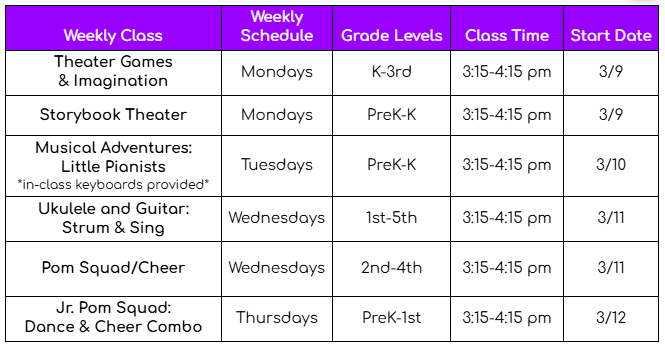 Our partner, Chicago School of Musical Arts (ChicagoSMA), is offering after-school group classes led by local artist-teachers. Classes include: Theater(K-3rd), Storybook Theater (PreK-K), Musical Adventures: Little Pianists(PreK-K), Ukulele and Guitar: Strum & Sing, Pom Squad (2nd-4th) and Jr. Pom Squad (PreK-1st). This is a wonderful opportunity to introduce your child to music, movement and the arts or continue learning!