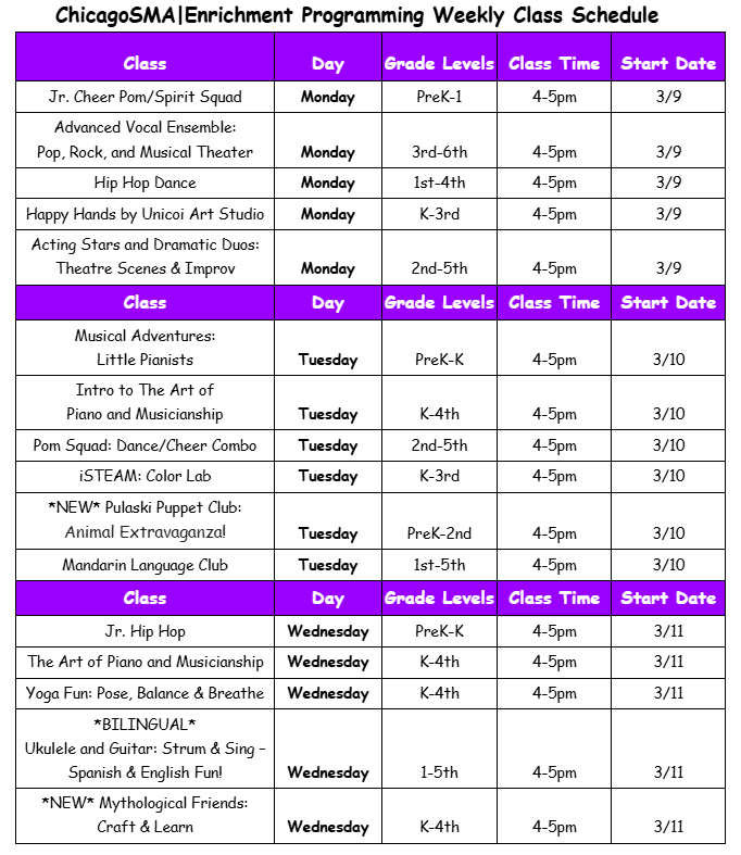 ChicagoSMA|Enrichment and Pulaski Elementary School have teamed up again to offer exciting after-school group classes led by local expert artist-teachers. This is a wonderful opportunity to introduce your child to a new skill or continue learning!