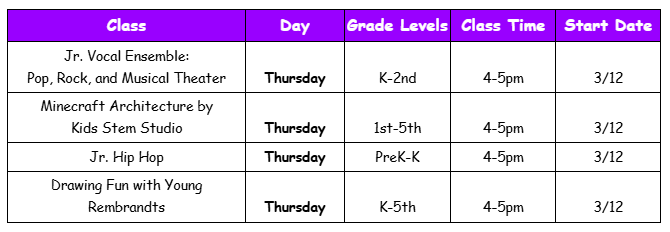 Join us for After School Enrichment Programs