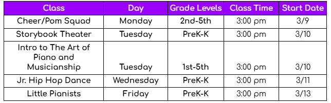 After School Enrichment Programming: